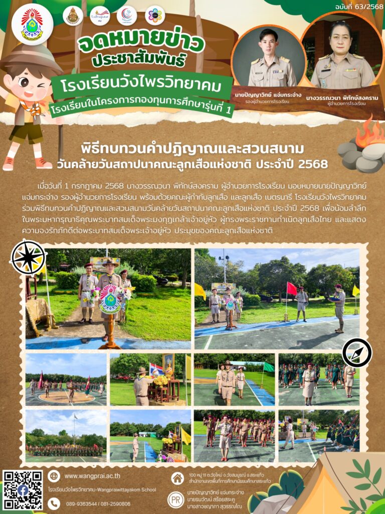 พิธีทบทวนคำปฏิญาณและสวนสนาม วันคล้ายวันสถาปนาคณะลูกเสือแห่งชาติ ประจำปี 2568 16 ส.ค. 256816 ส.ค. 2025ratchakarnกิจกรรมภายใน, ข่าวสาร, ประกาศ