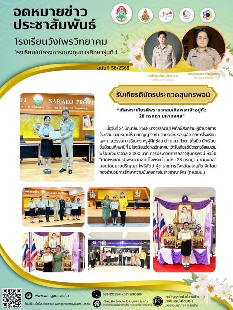 รับเกียรติบัตรประกวดสุนทรพจน์ “เทิดพระเกียรติพระบาทสมเด็จพระเจ้าอยู่หัว 28 กรกฎา มหามงคล” 16 ส.ค. 256816 ส.ค. 2025ratchakarnรางวัล